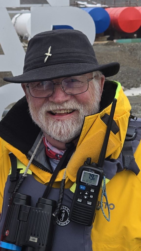 船上的资深鸟类学家保罗在拍摄他研究了几十年的企鹅。