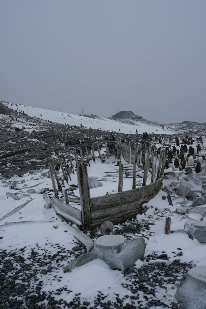 这应该是当年挪威鲸鱼加工船,周围散落许多巨大、风化的鲸骨。