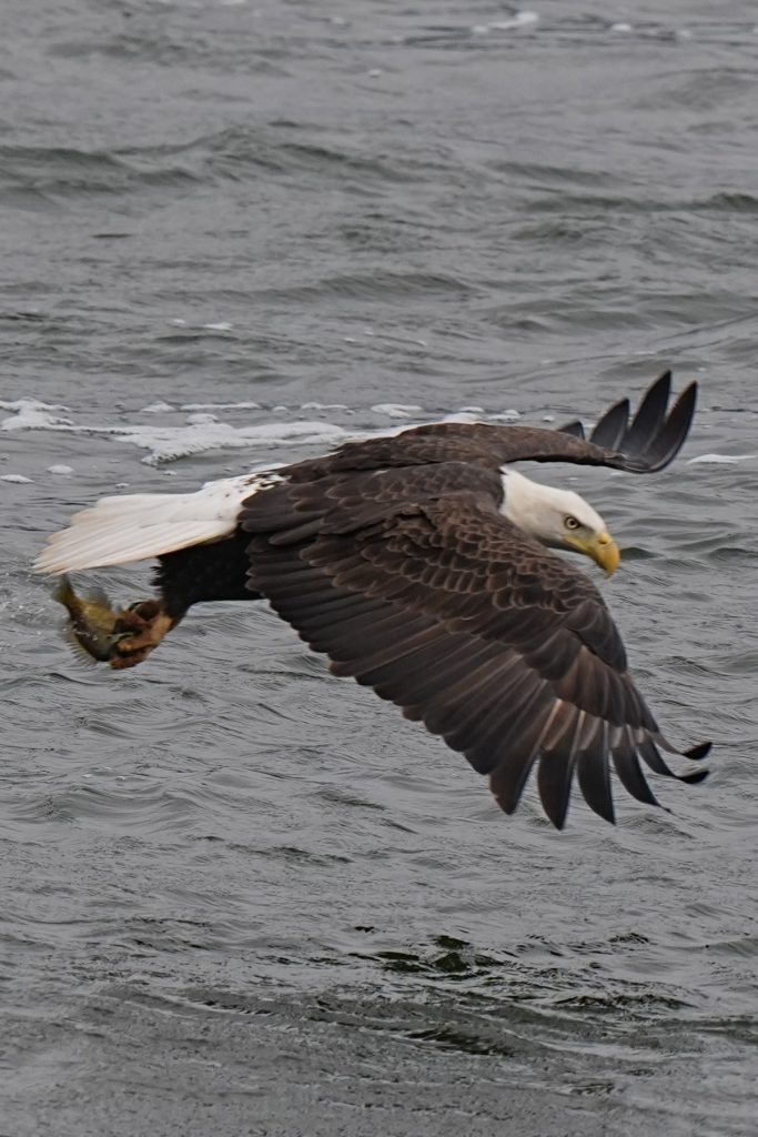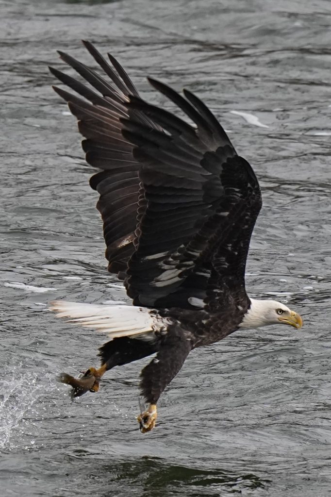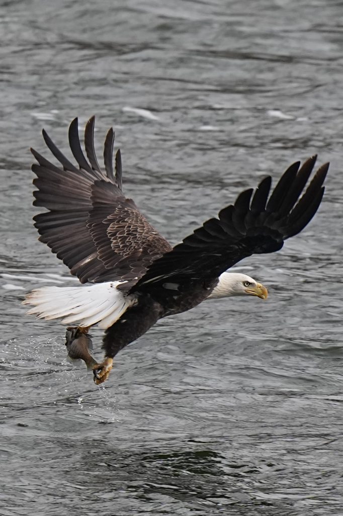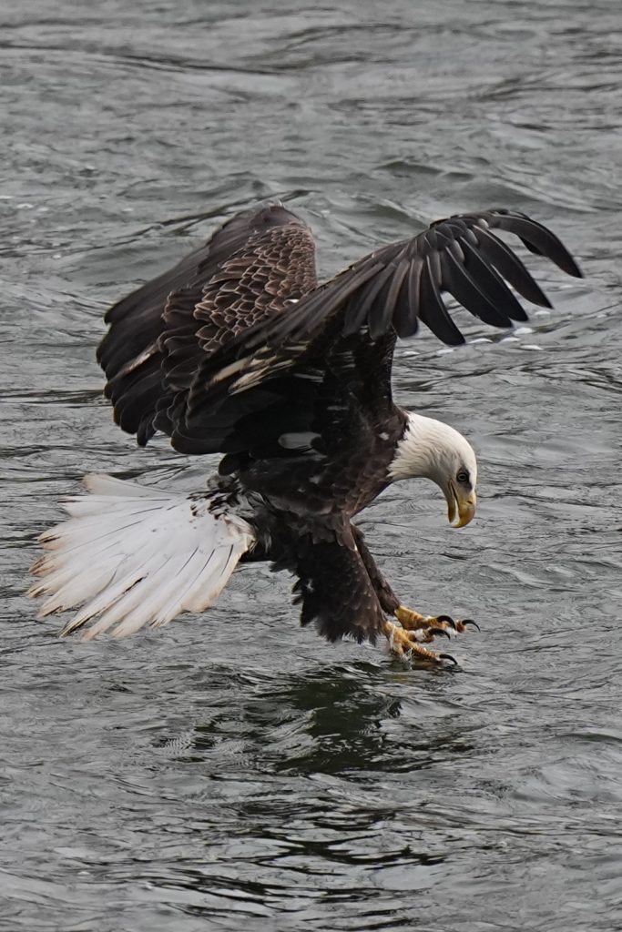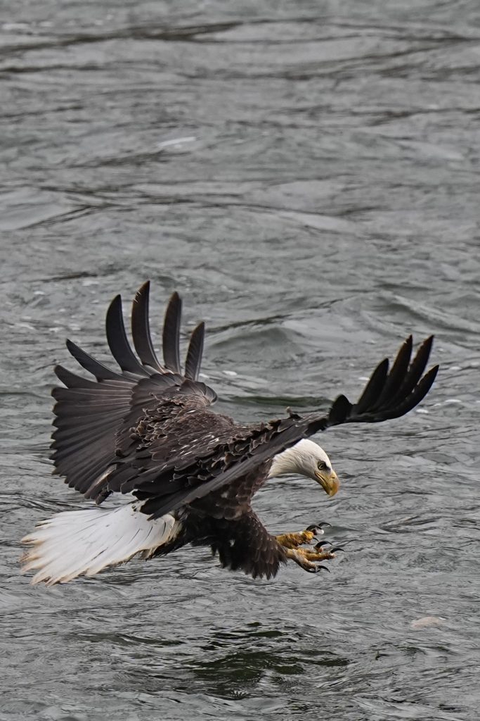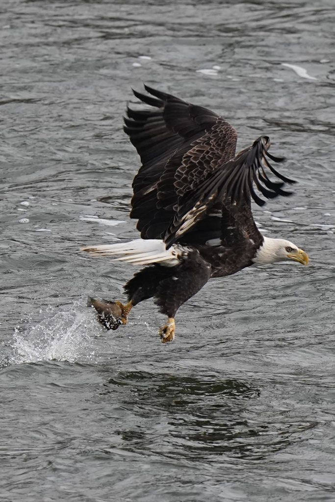 白头鹰 (二) Bald Eagle 第二篇:水上抓鱼 科诺温戈水坝放水,大量鱼被冲下来。冬季有许多鲱鱼,成为从加拿大或美国北部来这里过冬的白头鹰的丰富美食。 白头鹰很聪明,在捕食策略、学习能力、机会判断上非常出色。幼鸟会观察、学习、模仿成年鹰,看哪里有鱼,什么时候涨水,哪些地方容易成功。 以下5张是白头鹰抓鱼的标准系列动作👇 上一篇是白头鹰飞姿百态 下一篇是白头鹰空中争斗