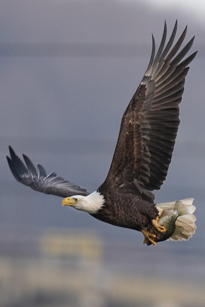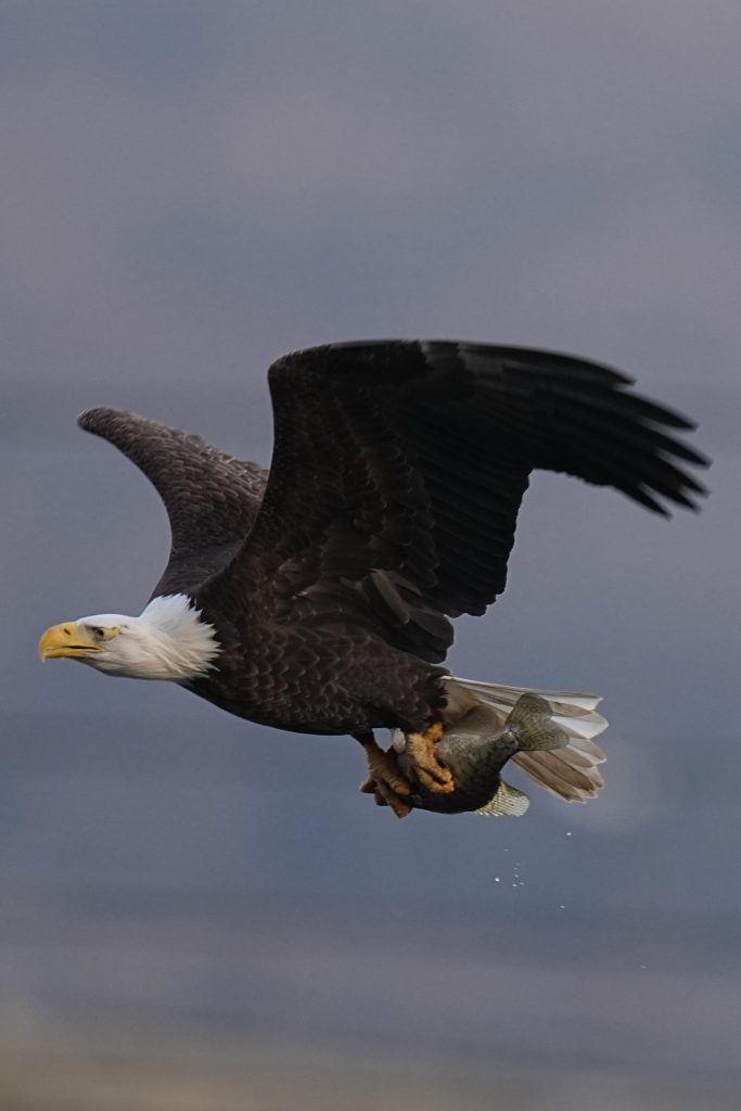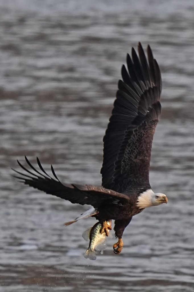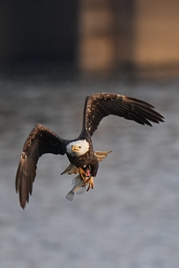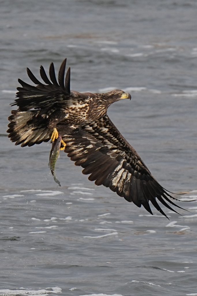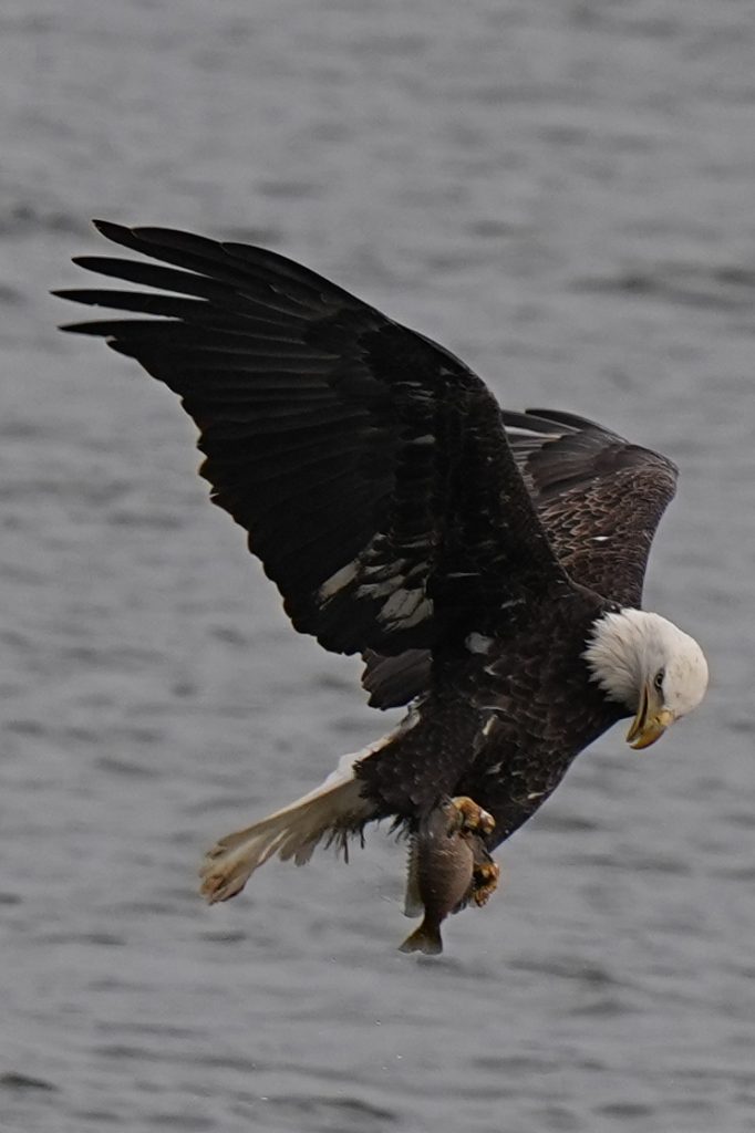白头鹰 (二) Bald Eagle 第二篇:水上抓鱼 科诺温戈水坝放水,大量鱼被冲下来。冬季有许多鲱鱼,成为从加拿大或美国北部来这里过冬的白头鹰的丰富美食。 白头鹰很聪明,在捕食策略、学习能力、机会判断上非常出色。幼鸟会观察、学习、模仿成年鹰,看哪里有鱼,什么时候涨水,哪些地方容易成功。 以下5张是白头鹰抓鱼的标准系列动作👇 上一篇是白头鹰飞姿百态 下一篇是白头鹰空中争斗